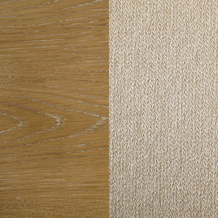 Infuse your kitchen or dining room with the inviting warmth of a modern farmhouse dining set that includes a round table and four side chairs. The set is designed for casual enjoyment and vintage style, complete with a starburst wedge veneer pattern on its charming tabletop. The base of the table adds thick supports, including flared legs and crossing stretchers enhanced with joinery details. The set is ideal for a compact space, seating four comfortably with its 54-inch tabletop diameter. Its brown oak wood finish extends to four side chairs, each with a ladderback and padded seat covered in latte finish upholstery for a versatile look.
