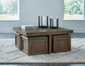 Elevate your entertainment experience with the Boardernest occasional table package. A functional companion for your seating area, it’s defined by a richly versatile finish. Instantly upgrade game days and movie nights—the four cushioned storage stools wheel out easily with casters, tucking away neatly under the coffee table when you’re done. End tables with open and concealed storage keep essentials on hand and out of sight.