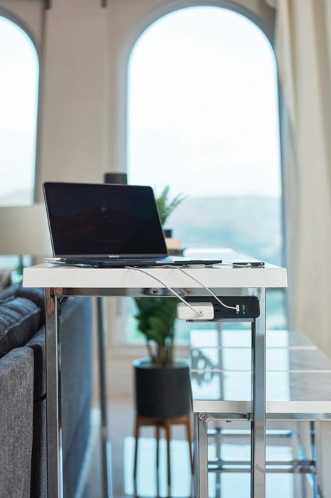 Stylish and versatile, this counter height table set exudes modern elegance. From kitchens to living rooms to rec rooms and more, it's perfect for adding extra seating and table space to any room in your home. The table is crafted with a scratch-resistant surface made from beautiful, white faux marble. The sleek, angular frames are crafted of metal in a gleaming chrome finish for a gorgeous touch of polish. This stunning set comes with one table and three stools to instantly complete your space.
