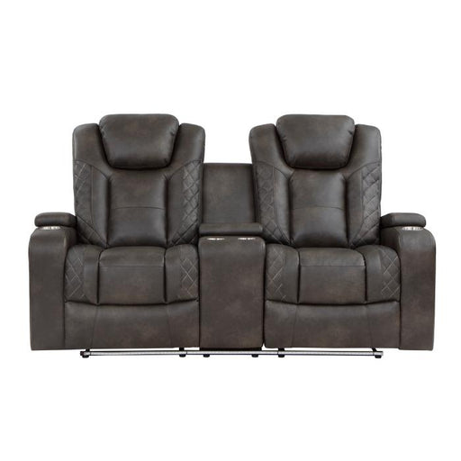 Homelegance (Fremont Warehouse)Providing ample seating for your friends and family is the Maroni Collection. The love seat feature USB port enhanced end power recliners. Dark Bro...