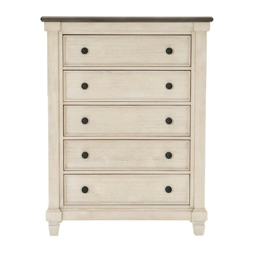 Homelegance (Fremont Warehouse)Weaver Collection by Homelegance Furniture Two Tone finish Antique white and Rosy brown color Made of acacia veneer and wood 5 dovetailed drawe...