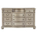 The Cavalier Collection exemplifies the finest in Old World European design inspiration. Egg and dart base moldings, bead molding, acanthus leaf carvings, and genuine marble inset top all blend to achieve an elegant addition for your traditional bedroom. The dresser’s beautiful details are accented by the silver finish on birch veneer. 68.5 x 21.5 x 41H