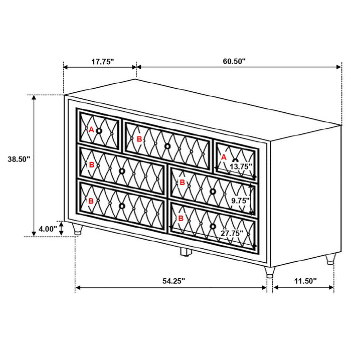 View full detailsMakeover your bedroom with this upholstered dresser. Bursting with French Provincial style, it's the perfect blend of traditional and modern. Seven...
