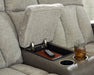 Refined relaxation, reimagined for the modern home. This power reclining seating package combines premium comfort with smart features like built-in storage arms, USB charging and cup holders. One-touch reclining and adjustable headrests let you find your perfect position, while luxurious heat and massage functions melt away the day's stress. And for an added dose of style, it's wrapped in a two-tone upholstery that pairs soft textured fabric with coordinating faux leather.