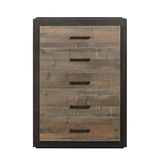 Homelegance (Fremont Warehouse)Griggs Collection by Homelegance Furniture Dark Brown finish Made of ash veneer and wood 5 dovetailed drawers with ball bearing glides Distress...