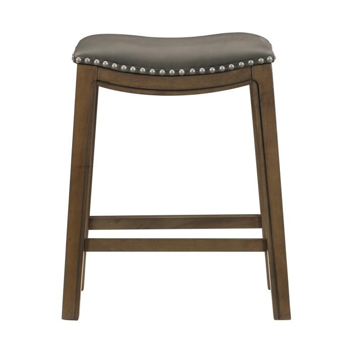 Transitional styling paired with versatility of selection makes the Ordway Collection a perfect addition to your home’s casual dining spaces. Whether pairing with a table that you already have, adding seating to your countertop or casual entertaining space, the three available heights provide several options to choose from. The stool is offered in three heights - 24-inches, 18-inches and 29-inches. The brown finished wood legs and seat apron feature routed accent while the gray faux leather seat features nailhead trim that further defines the stool’s profile. 4 additional seat colors are available – brown, red, green and black – in each stool height. 21 x 14.5 x 26H