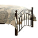 With a look that is a perfect complement to a number of room decors, the Averny Collection will provide the additional sleep space you need for your home. The twin size headboard and footboard are supported by a metal slat system that requires that a mattress only is needed to complete the bed. Ball finials and a black & brown two-tone finish complete the look of the bed. Also available in full. 42 x 79 x 35H