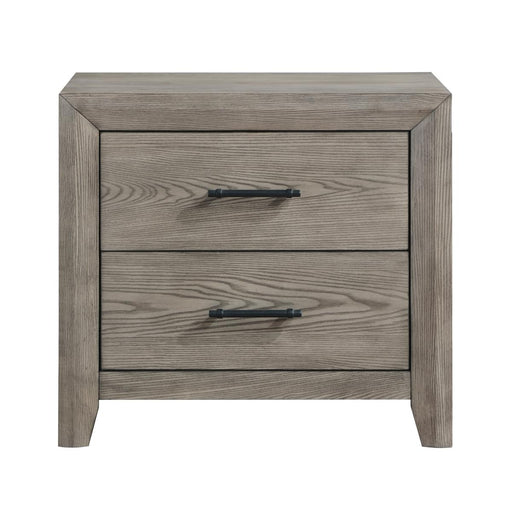 Bring a modern, rustic touch to your bedroom with this Silas Bedroom Collection. Crafted from durable acacia wood and selected hardwoods, the nighstand features beveled edges and 2 dovetail drawers with ball bearing glides. The sleek gray finish enhances the natural wood grain while the matte black drawer pulls adds elegant touch, making this a versatile addition to any décor. Coordinating Queen bed, Eastern King and California King bed, dresser, mirror and chest are also available.